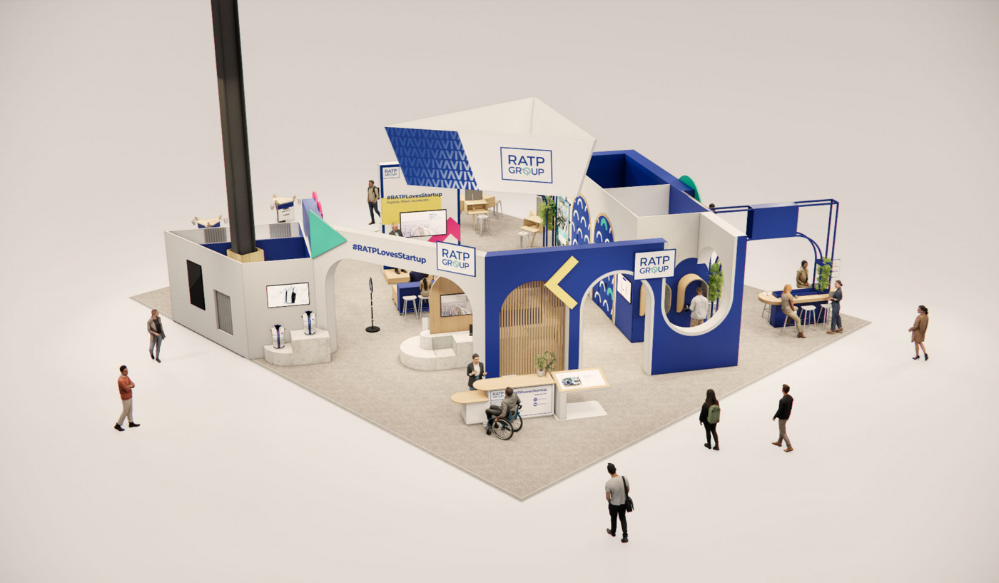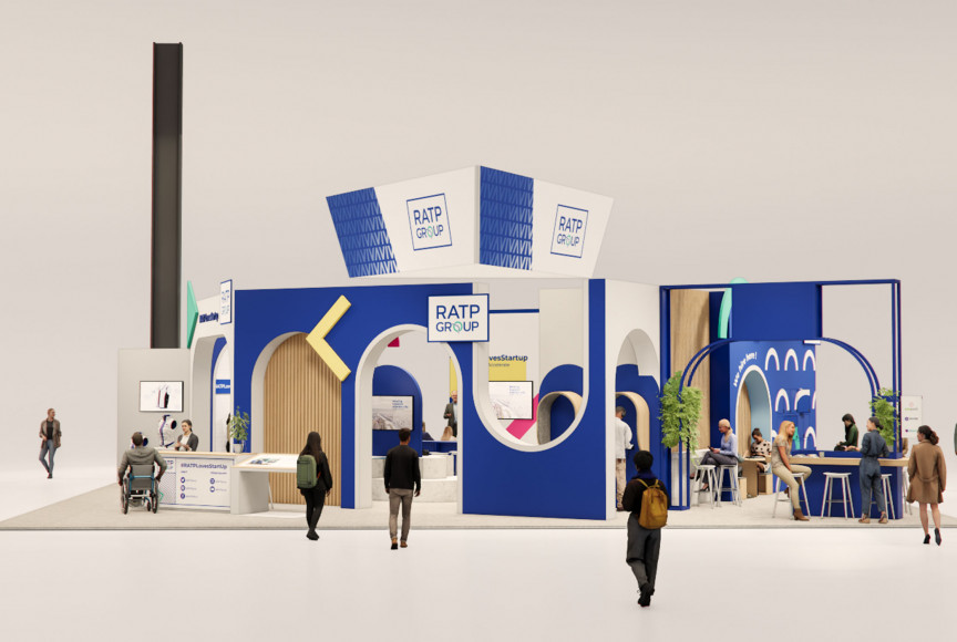 Le stand est dessiné comme une expression de la ville, une métaphore de l'urbanité vue par la RATP. Le stand joue avec des archétypes architecturaux pour créer des géométries, des passages, des ponts, qui offrent des perspectives dynamiques.