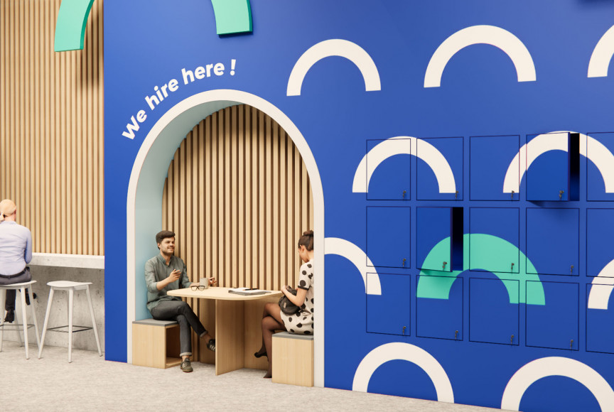 Le stand est pensé comme un espace d'hospitalité à 360°. Sur sa périphérie le stand propose des espaces de rencontres avec les publics du salon mais aussi des espaces de travail pour les collaborateurs. Au cœur du stand sont implantés les animations : espace d'exposition, espace de prise de parole, bar, photocall…