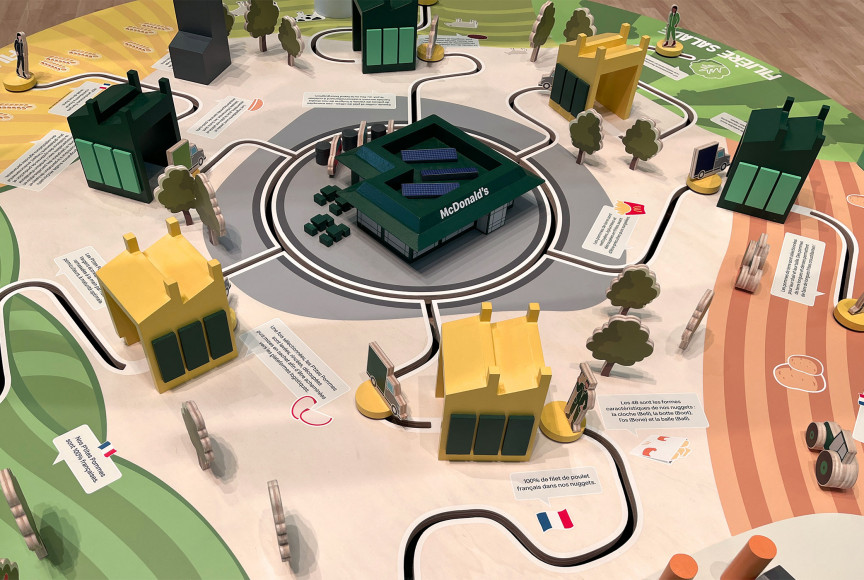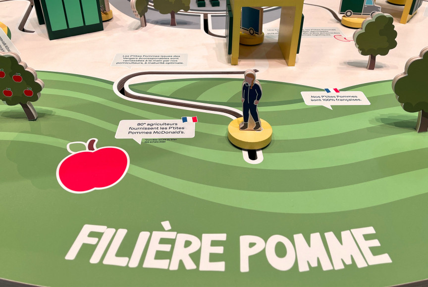 L'animation phare est "la table des filiales". Il s'agit d'un dispositif qui explique les grandes étapes des 5 filières d'approvisionnement des produits McDonald du producteur au transformateur jusqu'au restaurant.